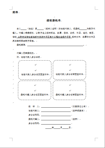 (1)法定代表人授權(quán)委托書(shū)、法定代表人及委托代理人身份證復(fù)印件,委托代理人必須為本工程擬派項(xiàng)目經(jīng)理;
