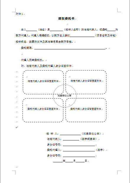 (1)法定代表人授權(quán)委托書、法定代表人及委托代理人身份證;