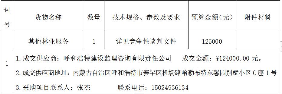 內(nèi)蒙古大青山國(guó)家級(jí)自然保護(hù)區(qū)管理局造林項(xiàng)目監(jiān)理服務(wù)成交結(jié)果公告