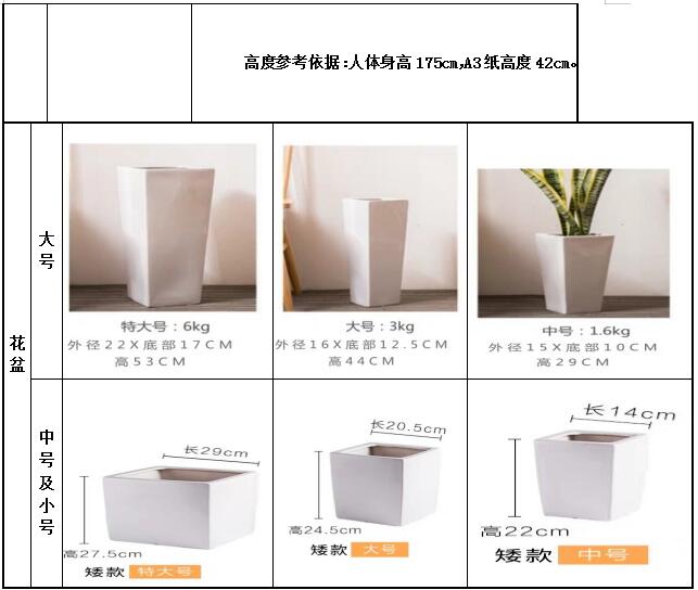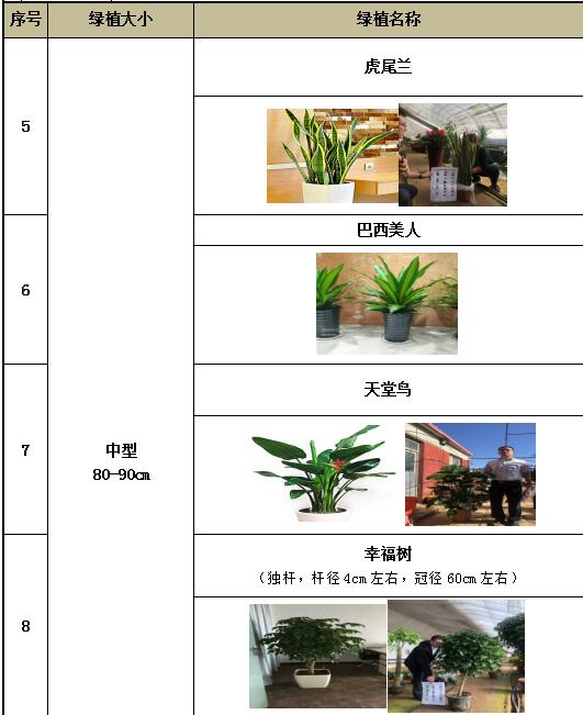 (備注:花盆統(tǒng)一用陶瓷盆,尺寸參考上圖,其中大廳服務(wù)區(qū)用白色花盆,理財(cái)區(qū)用咖色或黑色花盆,且中型以上含拖輪,小型含水墊。)