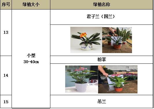 4.服務(wù)要求:供應(yīng)商在呼市地區(qū)有常駐服務(wù)機(jī)構(gòu),能夠當(dāng)天響應(yīng)我行需求,專業(yè)綠植打理人員不少于2人,能夠做到按周施肥、澆水、除塵、修剪;按季更換綠植種類;在呼市地區(qū)有綠植培育或管理基地,對(duì)于需要更換的綠植確保能夠在2個(gè)工作日內(nèi)處理完畢;有專業(yè)設(shè)計(jì)管理人員,能夠結(jié)合我行網(wǎng)點(diǎn)布局合理布放綠植,確保廳堂的整體美觀性和協(xié)調(diào)性。